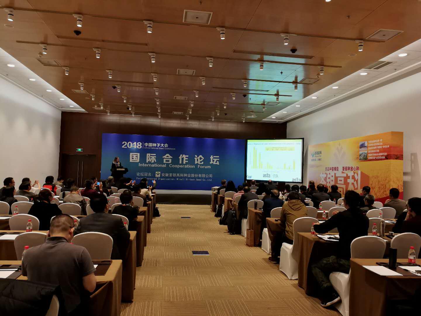 ? ?2018年3月25-27日,由中國種子協(xié)會主辦的首屆中國種子大會在北京國家會議中心舉行,大會共吸引了近700名種業(yè)界人士參加,其中還包括來自美國、印度、印度尼西亞等國家的國際種業(yè)人士。荃銀高科應邀參會并布展,公司張琴董事長作為中國種子協(xié)會副會長、國際合作分會會長主持國際合作論壇。