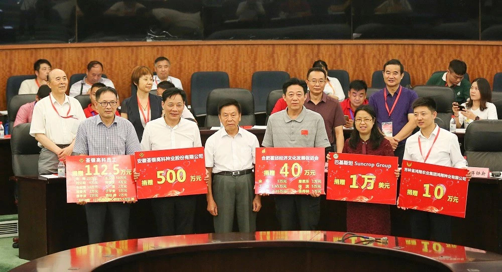 會上進行了基金會2018年公益愛心捐贈儀式。荃銀高科母子公司高管和員工多次參與基金會濟困助學(xué)公益慈善活動,本次捐贈112.5萬元;吉林鴻翔種業(yè)集團鴻翔種業(yè)有限公司捐贈10萬元;巴基斯坦Suncrop Group(陽光作物集團)捐贈1萬美元;合肥霍邱經(jīng)濟文化發(fā)展促進會及會員為基金會貧困助學(xué)項目捐贈40萬元;安徽荃銀高科種業(yè)股份有限公司捐贈500萬元。