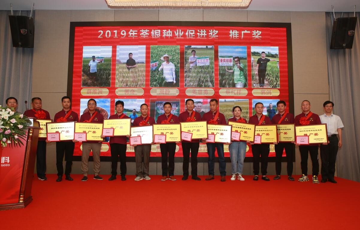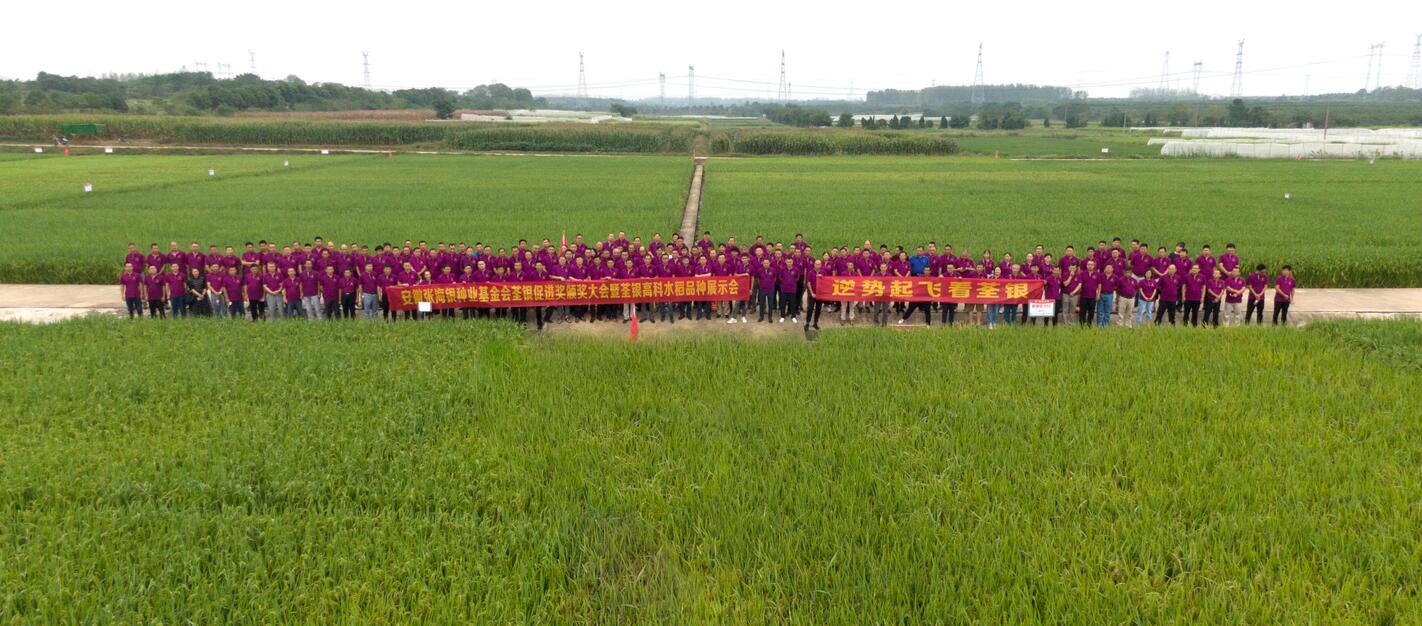 ??? 2019年9月1日,安徽張海銀種業(yè)基金會“荃銀種業(yè)促進獎”頒獎大會暨荃銀高科水稻品種展示會在合肥召開。中國種業(yè)十大功勛人物、荃銀高科創(chuàng)始人、安徽張海銀種業(yè)基金會理事長張海銀,安徽省種子管理總站原站長、基金會專家組顧問成員、“荃銀種業(yè)促進獎”評審委員會主任孔令傳,荃銀高科副董事長、總經(jīng)理、基金會副理事長張琴,荃銀高科董事、常務(wù)副總經(jīng)理、基金會副理事長王玉林,荃銀高科副總經(jīng)理、荃銀農(nóng)科院院長、首席技術(shù)官張從合,基金會秘書長張彤,荃銀高科總經(jīng)理助理劉義銳、監(jiān)事會主席謝慶軍,荃銀高科工會主席、基金會監(jiān)事鄭滿生,中化現(xiàn)代農(nóng)業(yè)、中化化肥等單位領(lǐng)導(dǎo)嘉賓,以及來自湖北省16個縣區(qū)180多位三農(nóng)一線種業(yè)工作者參加了會議。